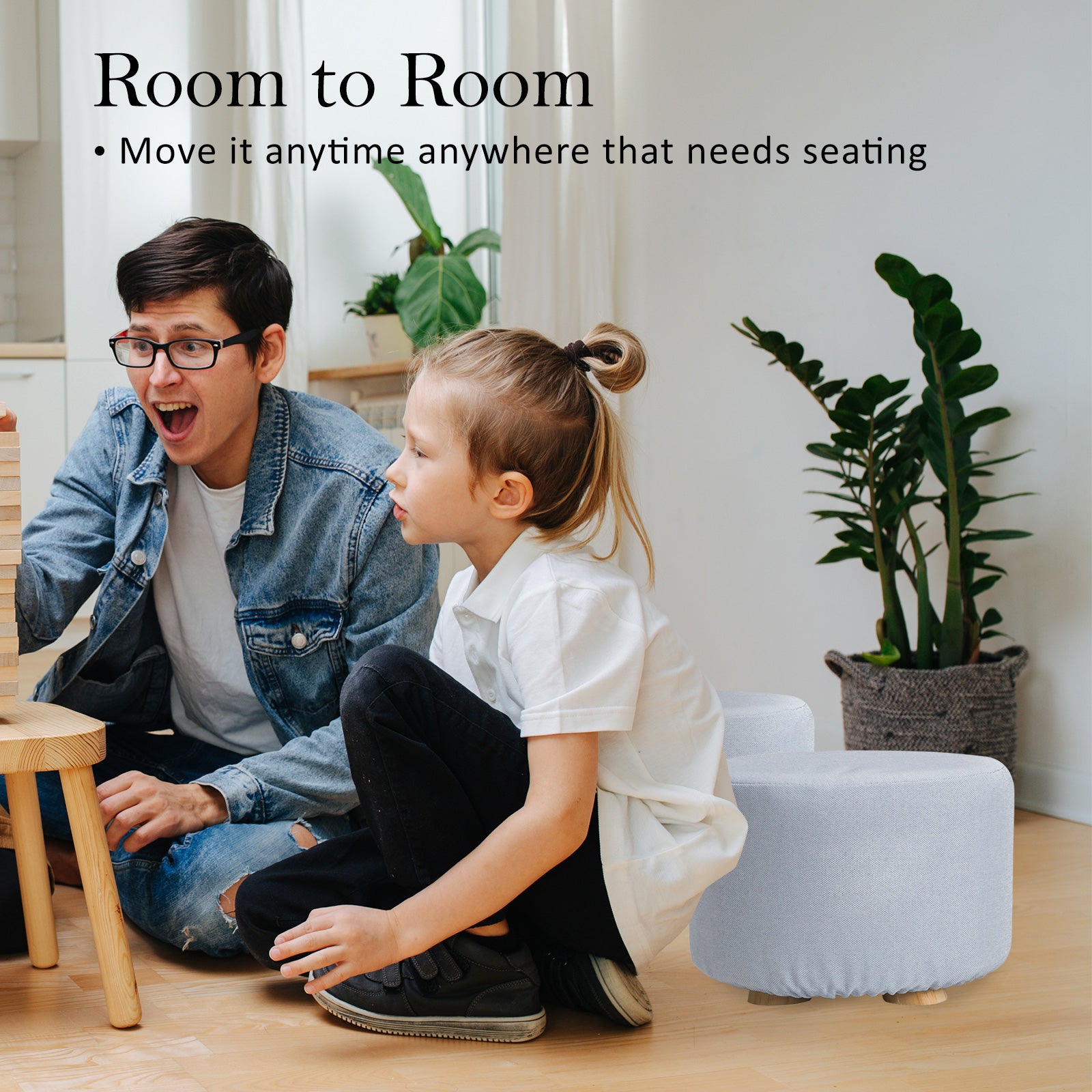 2X Fabric Ottoman Round Wooden Leg Foot Stool - LIGHT BLUE