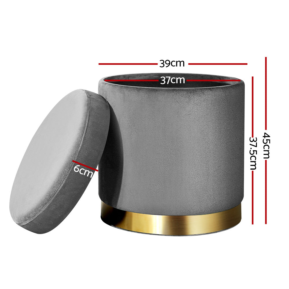 Artiss Ottoman Storage Foot Stool Round Velvet Charcoal